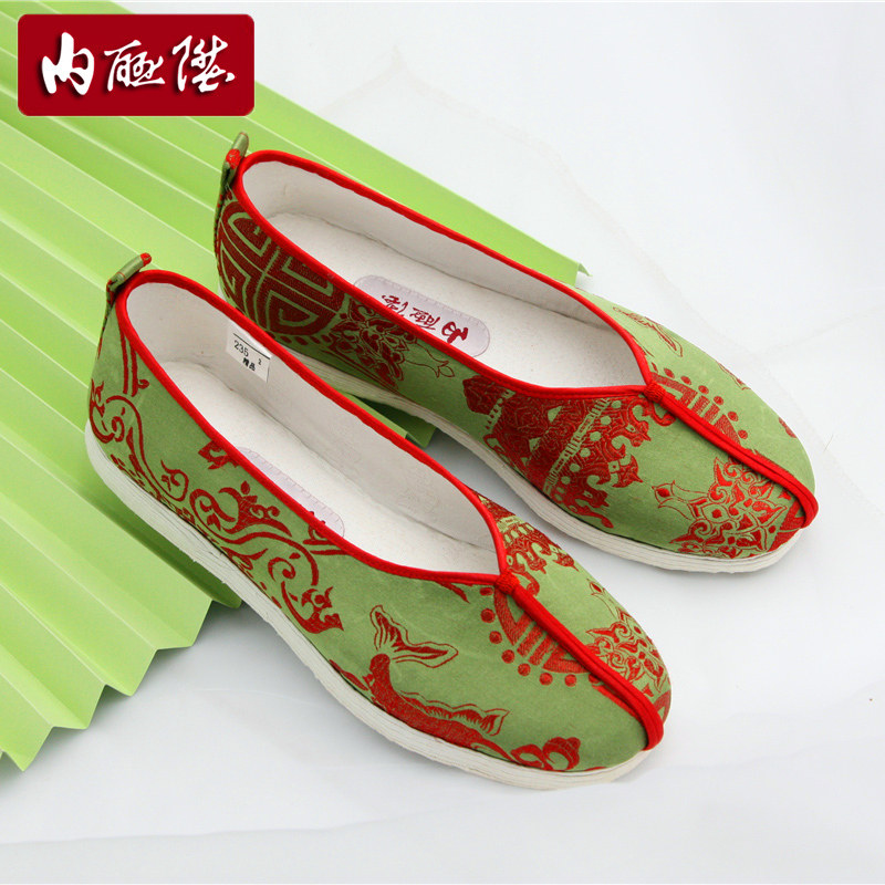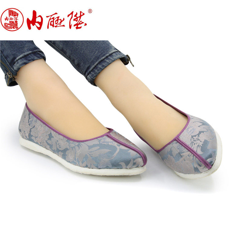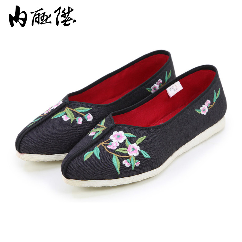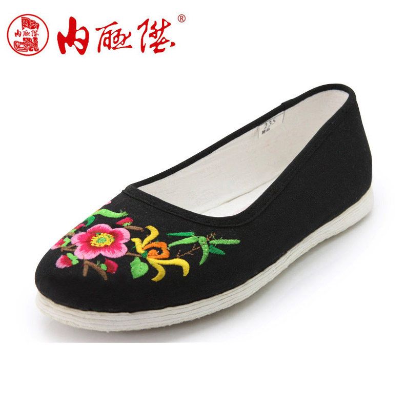 内联升女鞋布鞋老北京千层底工艺半绣女鞋手工绣花休闲鞋8411A