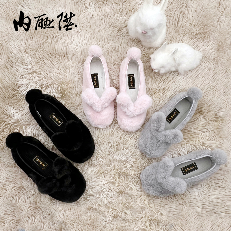 内联升女鞋冬季加绒毛毛鞋手工千层底龙行龘龘毛绒龙角布鞋DN8695