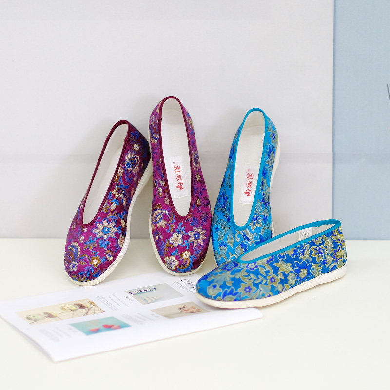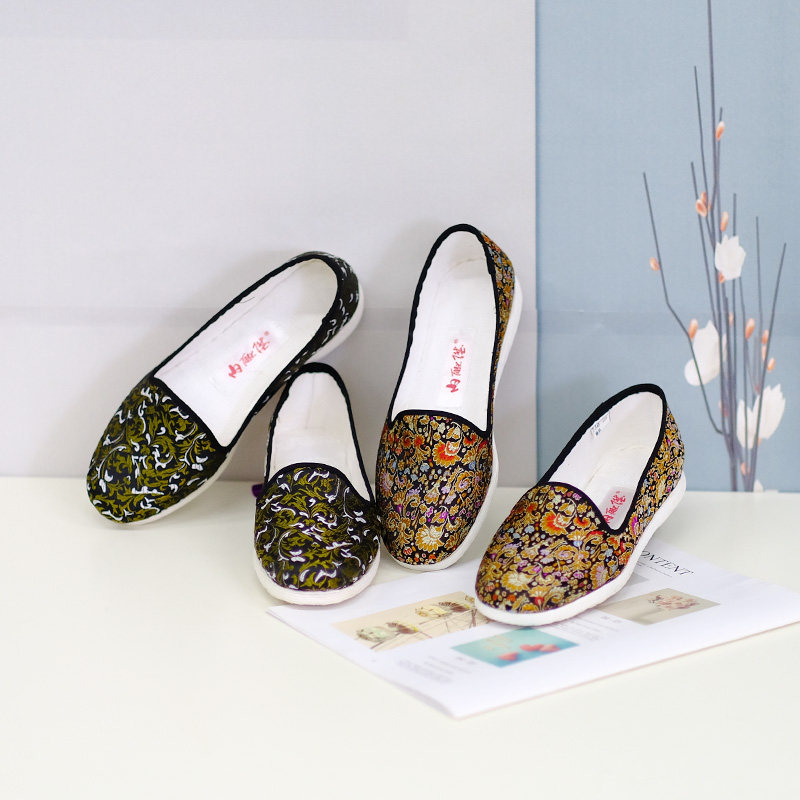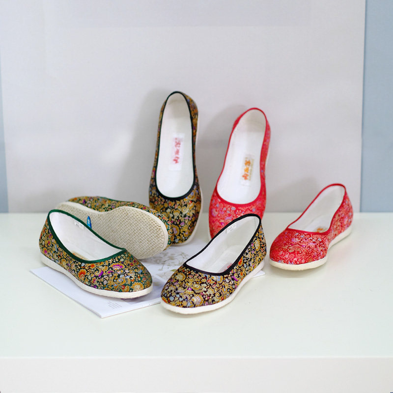 内联升布鞋春季新款女鞋手工千层底布鞋织锦盘金牡丹绣花鞋8677A