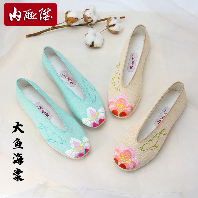 内联升女鞋手工布鞋千层底布鞋大鱼海棠系列绣花刺绣单鞋 DY8218