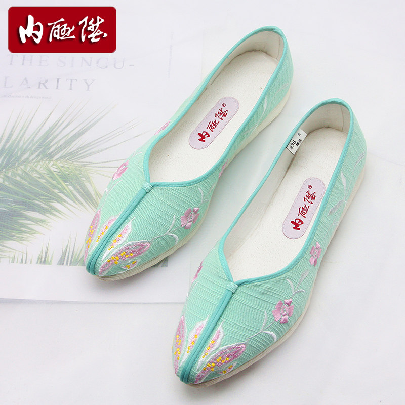 内联升布鞋女鞋手工千层底布鞋女尖头绣花如懿传莲花单鞋RY8236
