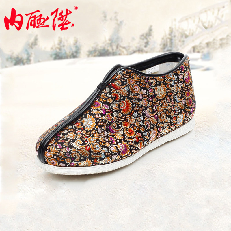 内联升布鞋女鞋冬季手工千层底布鞋女加密绣花安棉女士棉鞋8245A