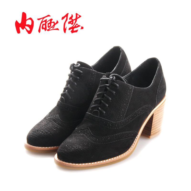 内联升女鞋春秋季时尚单鞋女士中跟牛皮系带高跟鞋4754C