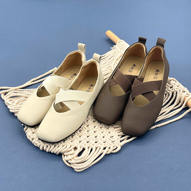 内联升新品女鞋百搭通勤羊皮单鞋浅口方头绑带平底舒适船鞋4255C