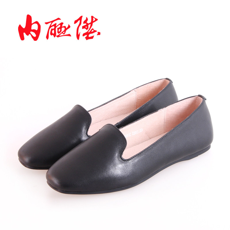 内联升牛皮女鞋春季新款浅口宽头平底鞋休闲鞋软底单鞋4256C