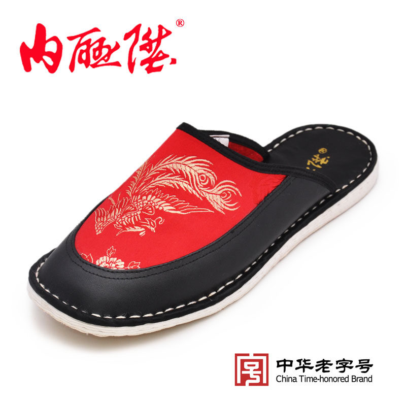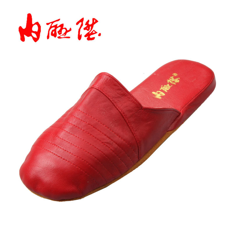 内联升拖鞋女鞋春秋季手工皮便拖鞋软皮底皮面居家便携拖鞋2002C
