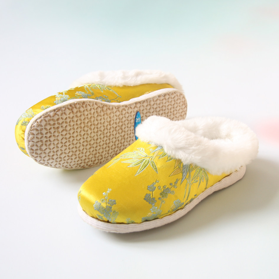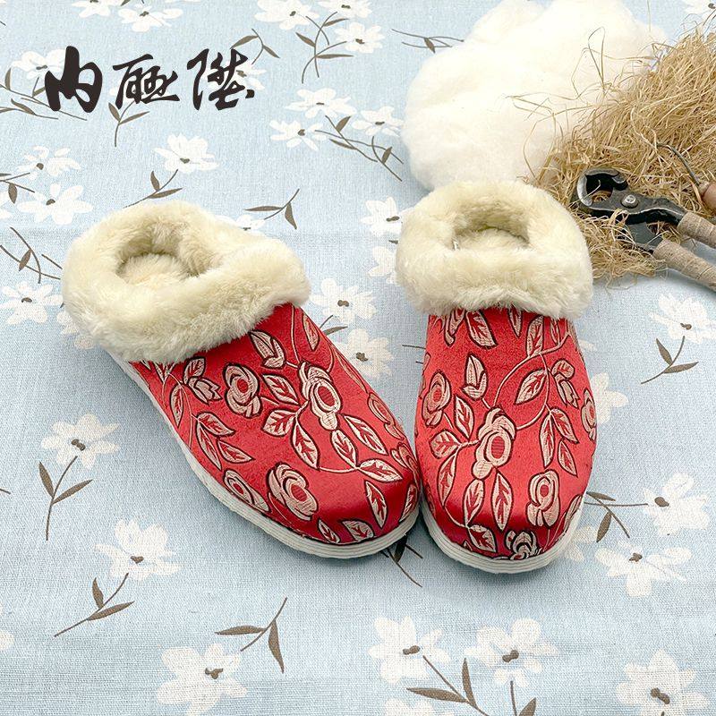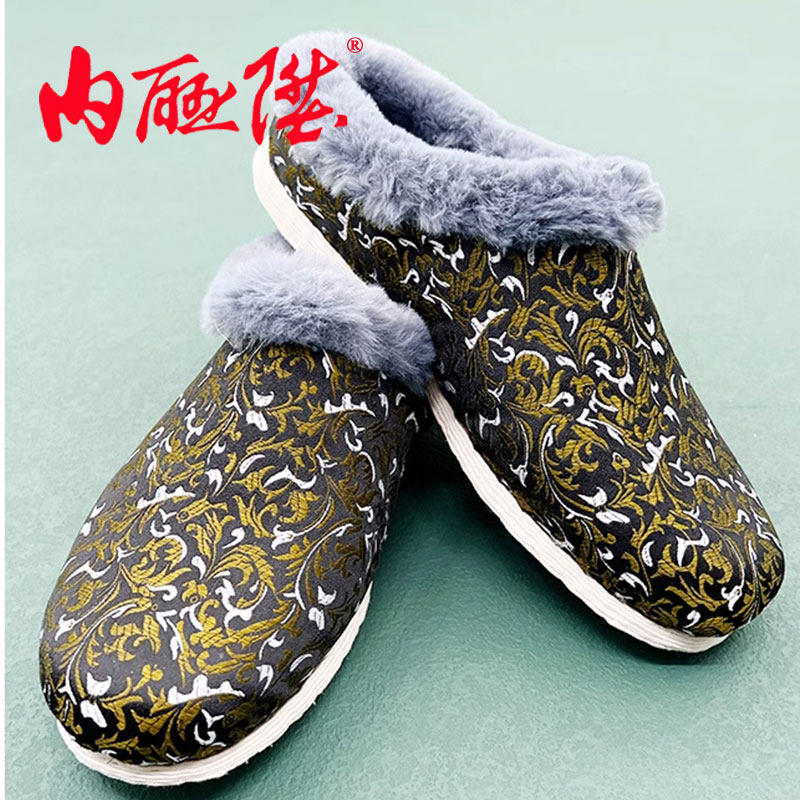 内联升布鞋冬季手工千层底男女居家织锦缎毛口棉拖鞋 2056C/2200C