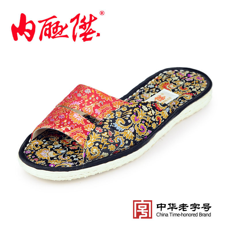 内联升布鞋女拖鞋舒适家居鞋春秋季时尚坤千层底织锦拖鞋2006C