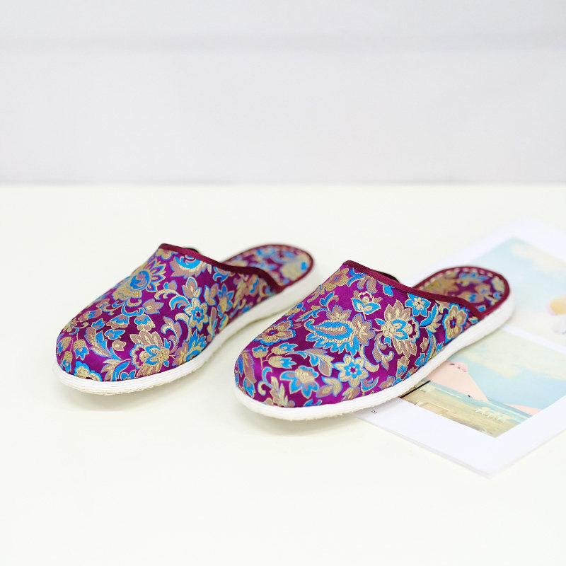 内联升布鞋女手工千层底女拼色真丝织锦拖鞋休闲居家拖鞋2036C