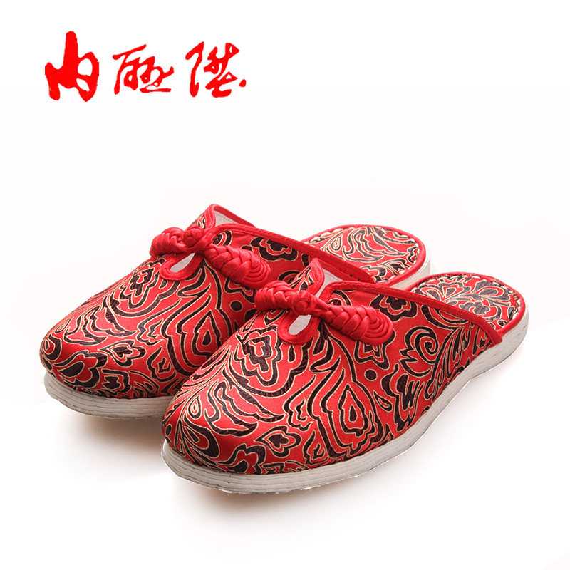内联升女鞋春秋季拖鞋手工千层底女千织锦盘扣包头拖鞋2040C