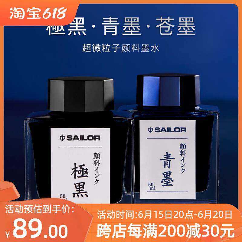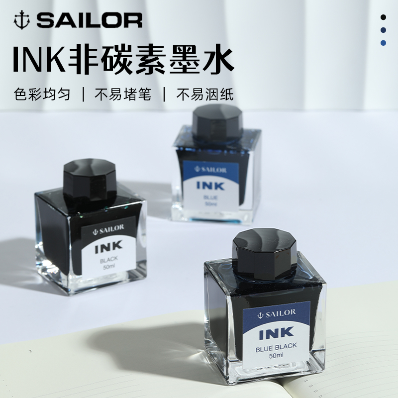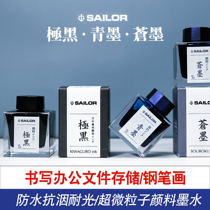 日本SAILOR写乐墨水 极黑 青墨苍墨钢笔用不堵笔颜料防水防洇墨水