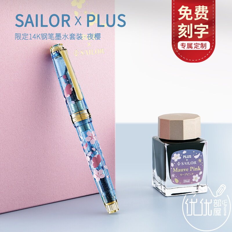 一航夜樱日本SAILOR樱花男女礼品14K钢笔套装烫金本子特制墨水礼盒写乐