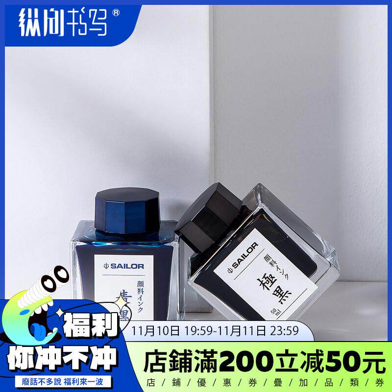 日本SAILOR写乐墨水 极黑 青墨苍墨50ml钢笔用墨水墨水
