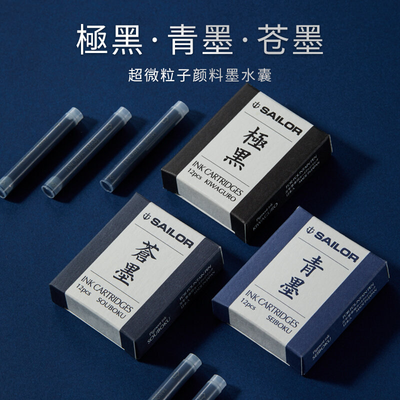 日本SAILOR写乐墨囊极黑青墨苍墨颜料墨水胆钢笔用墨水芯墨胆