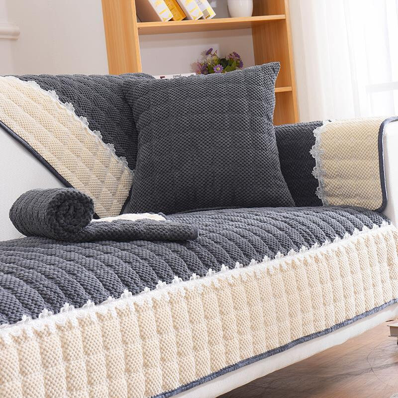 直供简约北欧雪尼尔沙发巾全盖布防滑双人千鸟格沙发套罩布艺四季