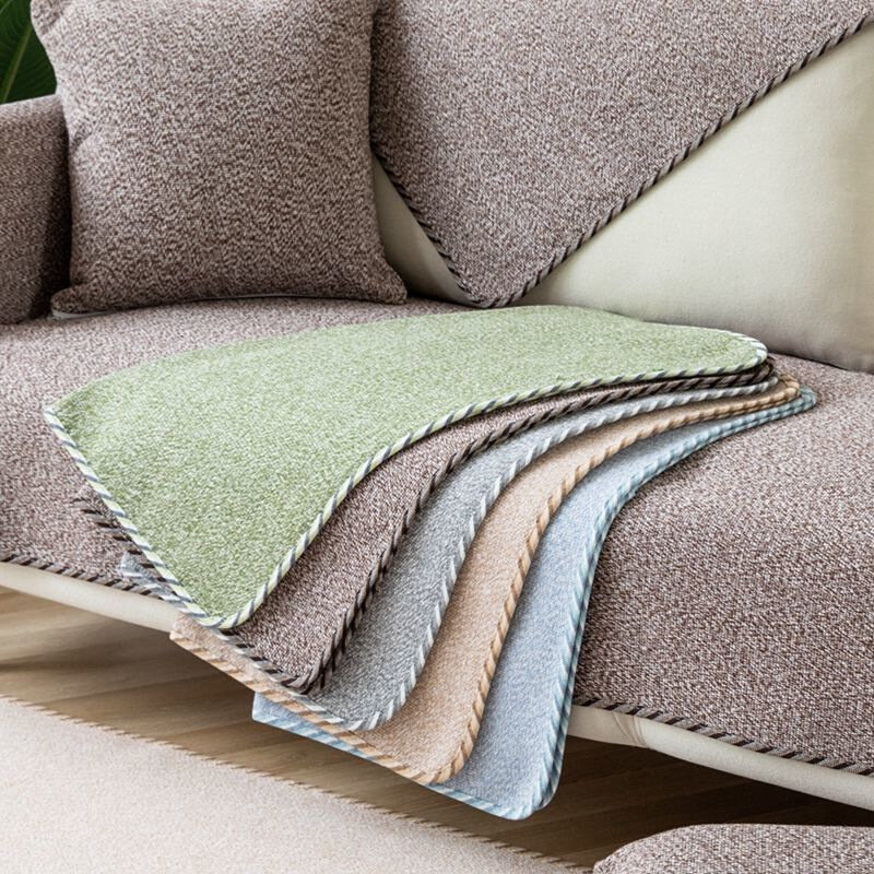 直供沙发靠背巾北欧垫子四季通用亚麻纯色夏季防滑沙发套布艺坐垫