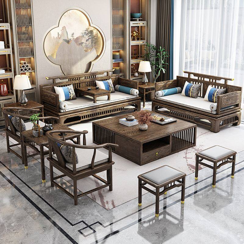 速发全实木沙发组合木质中国风禅意新中式家具客厅轻奢白蜡木布艺