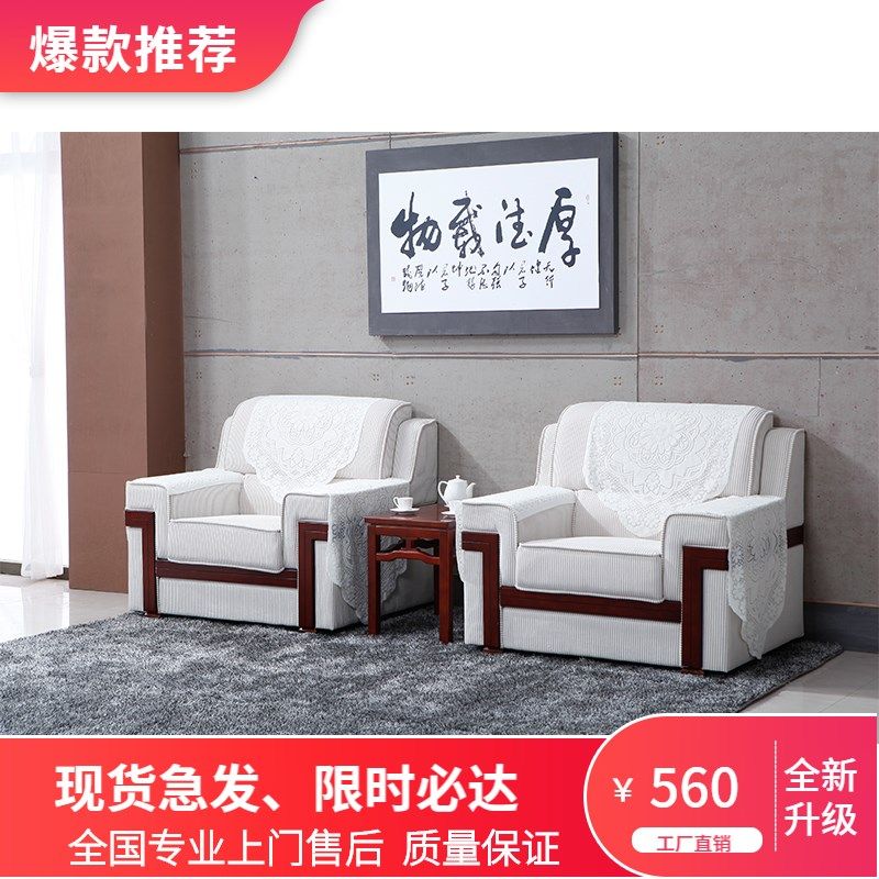 速发会议沙发办公室会客贵宾接待室沙发洽谈商务单人布艺沙发茶几