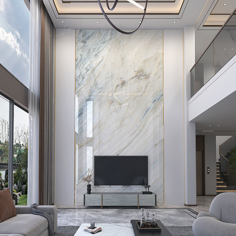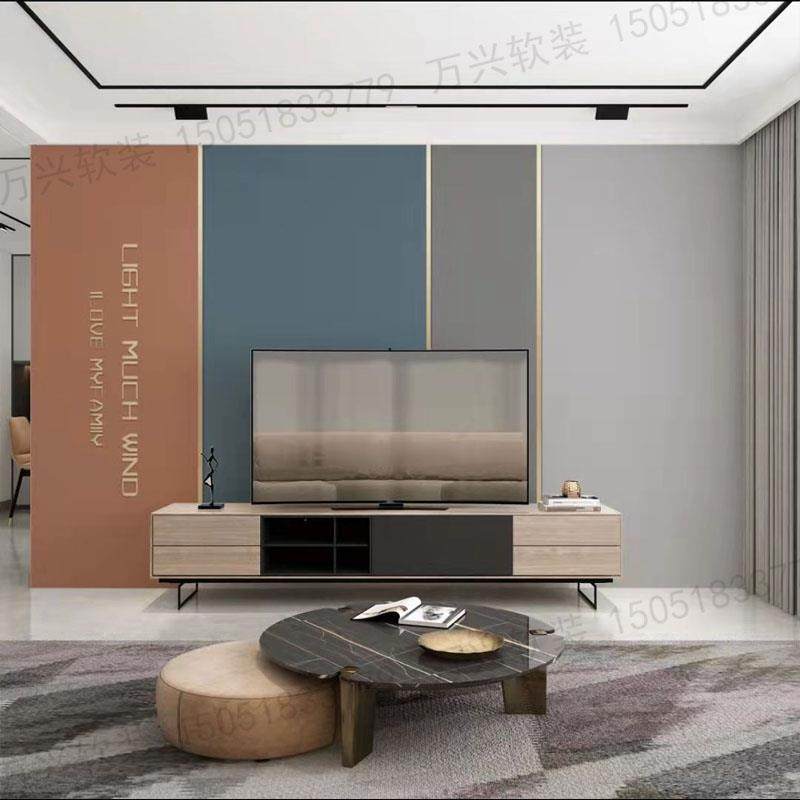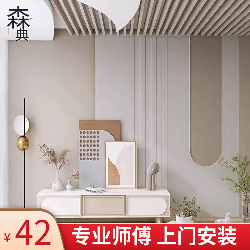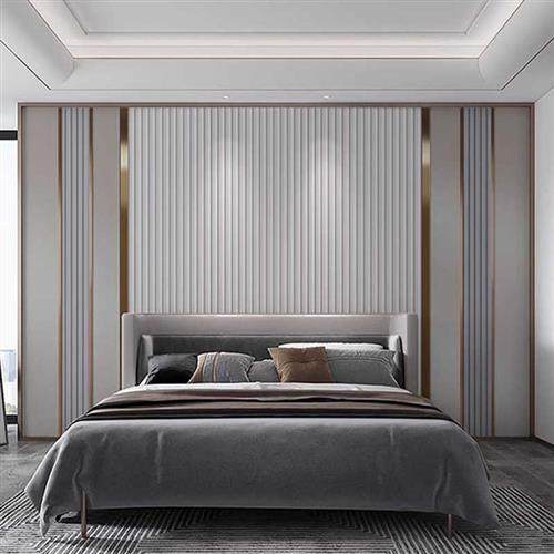 轻奢客厅电视沙发卧室床头酒店纯色硬包软包格栅半圆柱皮革背景墙