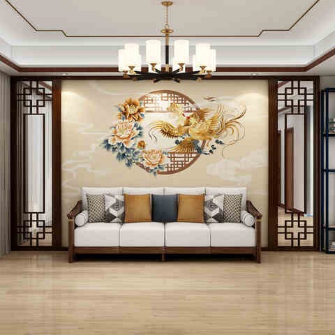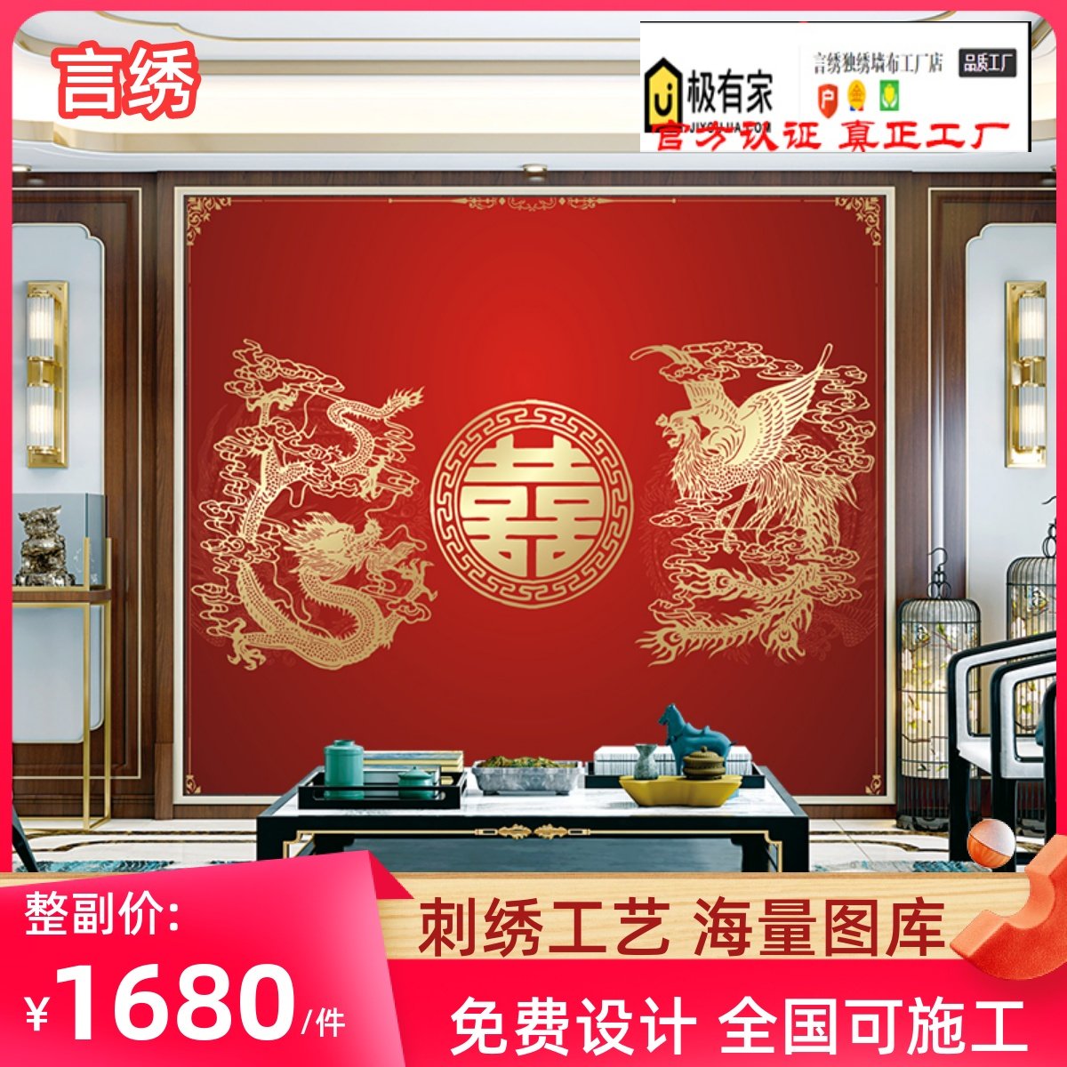 独绣刺绣壁布墙布无缝凤凰婚房沙发客厅电视山水独秀背景墙壁画新