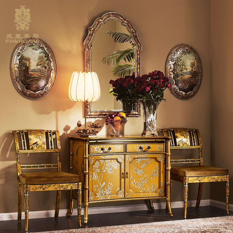 凤凰美居实木仿古彩绘家具门厅装饰玄关柜子沙发茶几花鸟家私