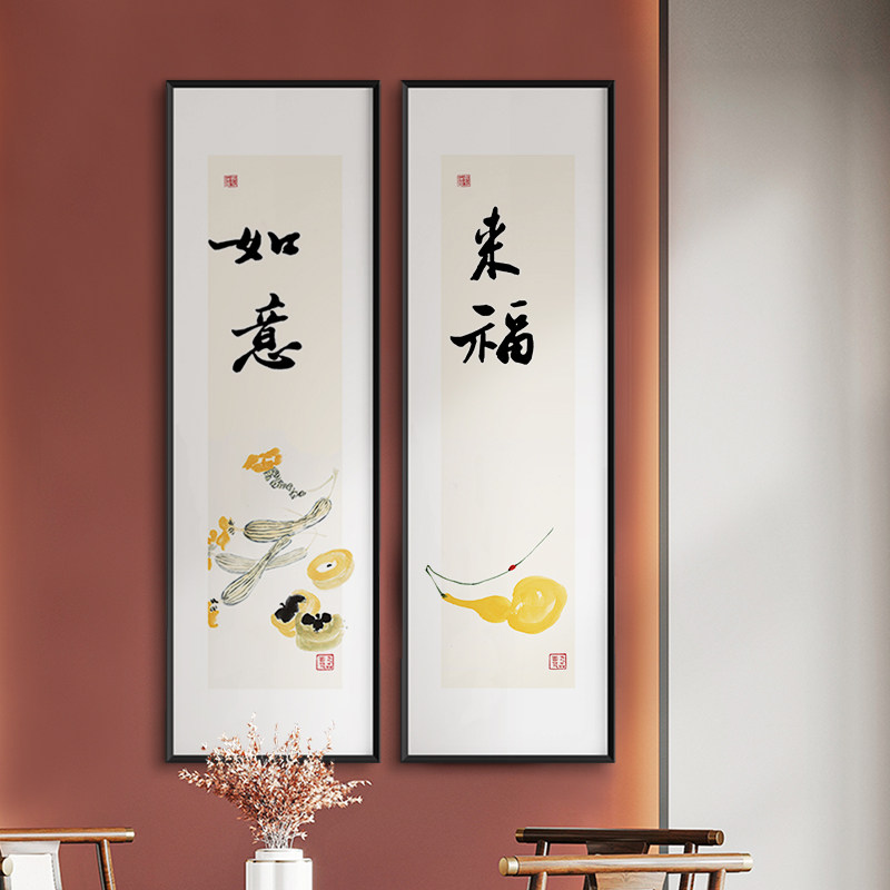 速发暖居文字新中式玄关竖版装饰画茶室办公室挂画客厅沙发背景墙