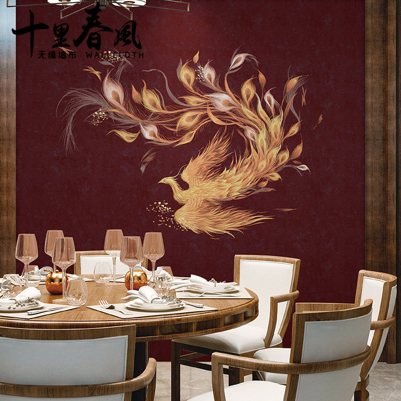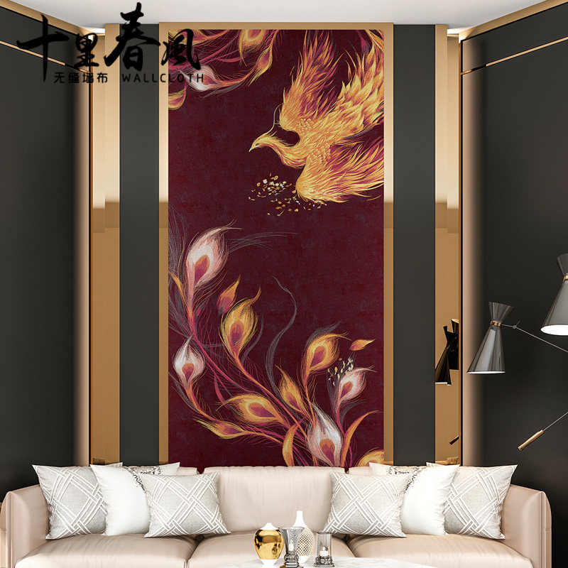 高端刺绣墙布电视沙发凤凰独秀背景F墙客厅走廊玄关独绣无缝壁布