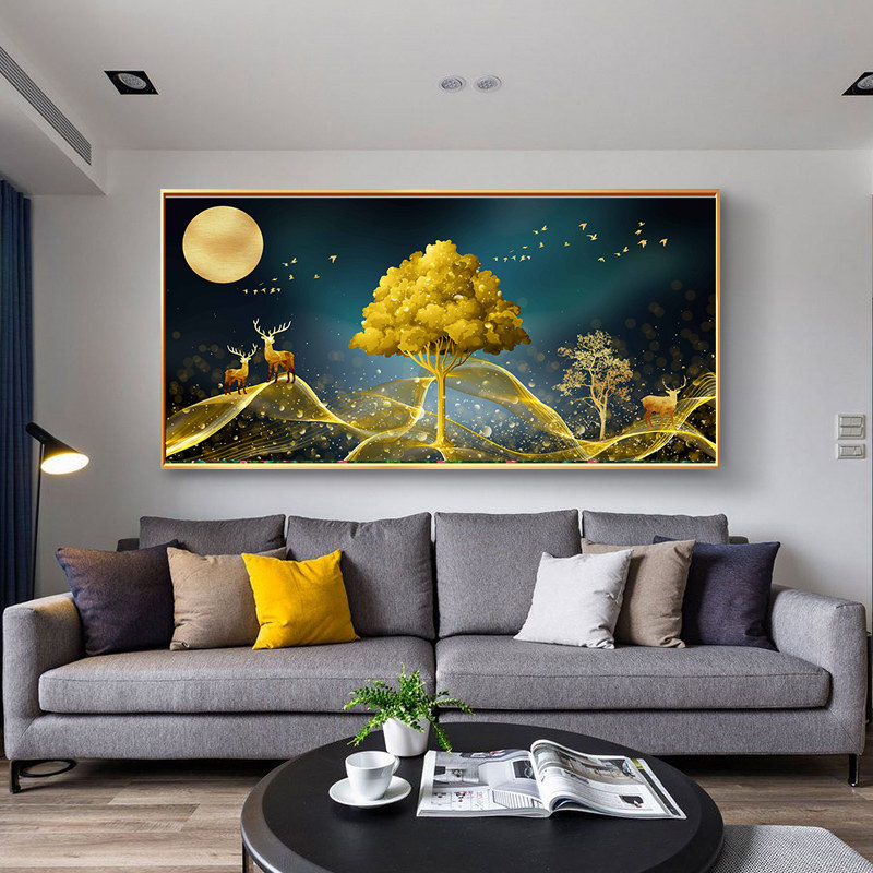 速发客厅挂画2022新款发财树装饰画沙发背景墙壁画大幅高端轻奢现