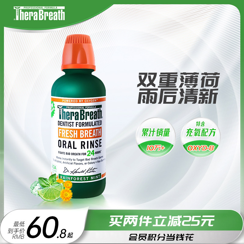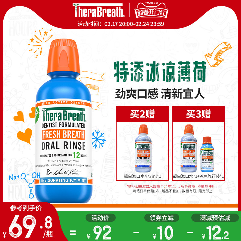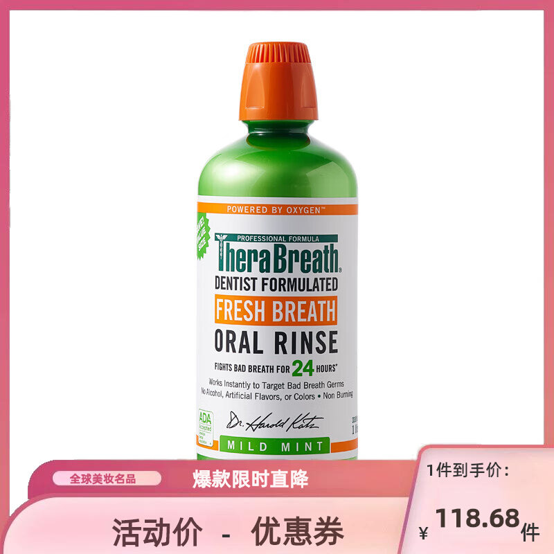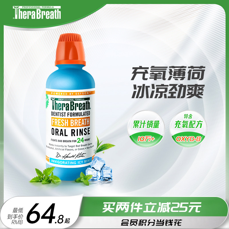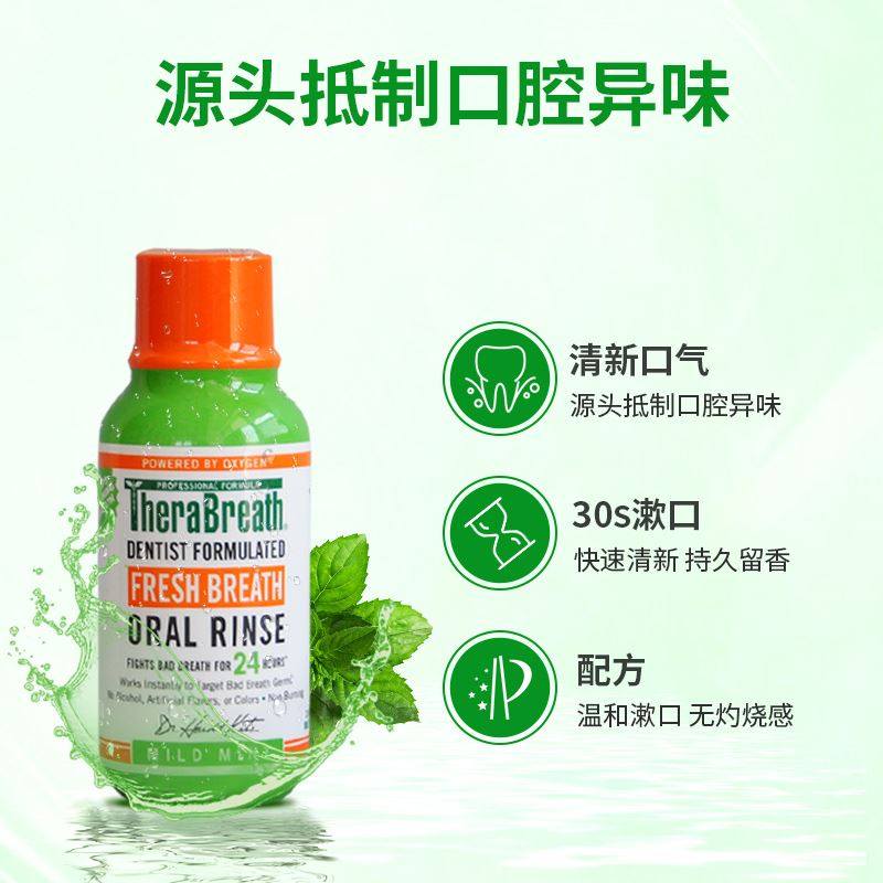 【爆款推荐】TheraBreath凯斯博士美国漱口水冰凉薄荷女男除口臭