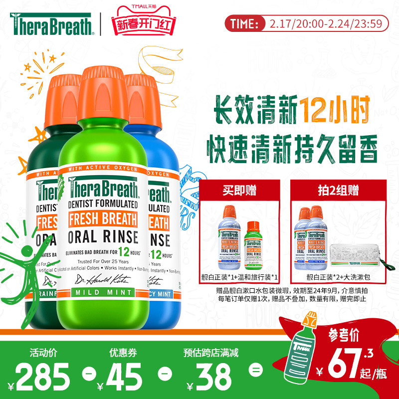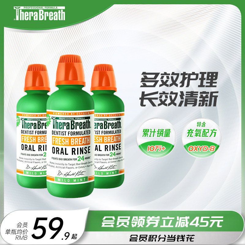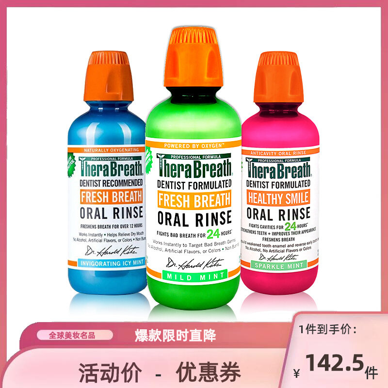 【3瓶】TheraBreath凯斯博士漱口水美国进口清新口气男女生成人涑