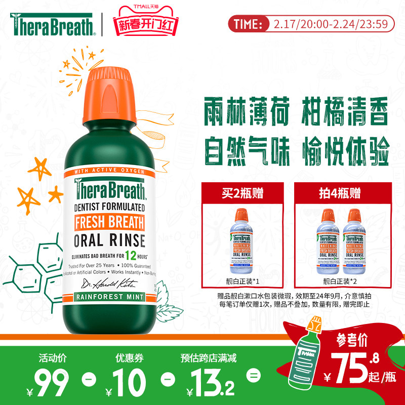 【百补】TheraBreath凯斯博士漱口水靓白防渍进口清新口气男女生