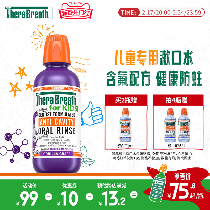 TheraBreath凯斯博士儿童漱口水防蛀牙含氟固齿清新口气持久留香