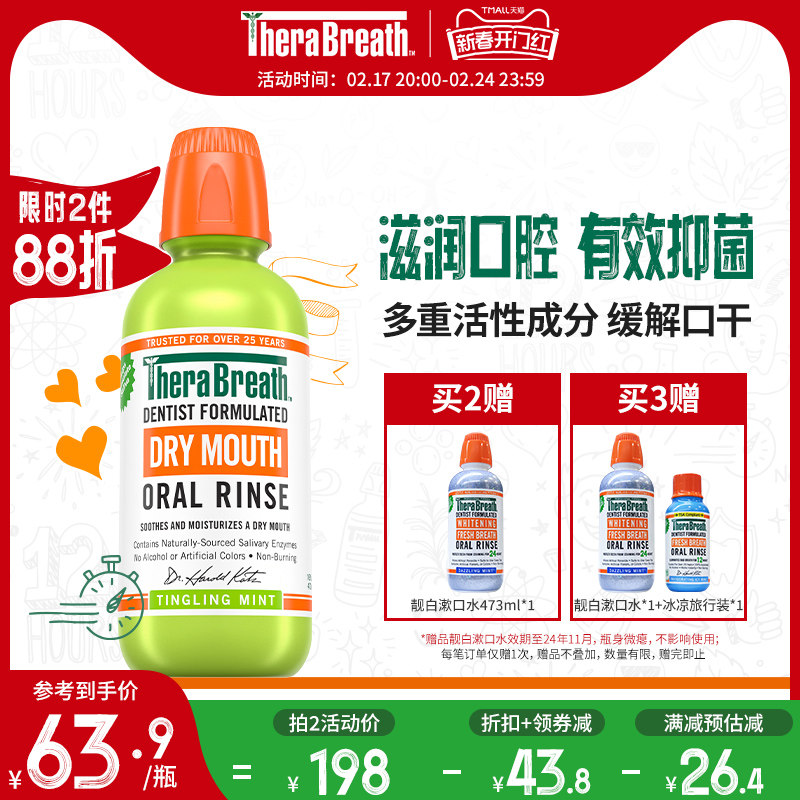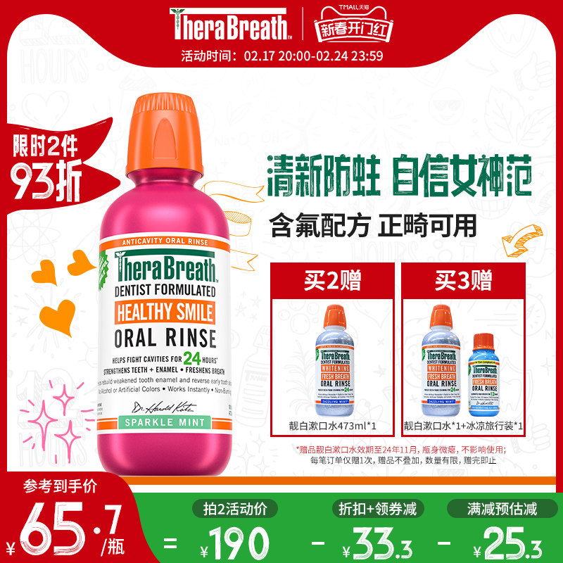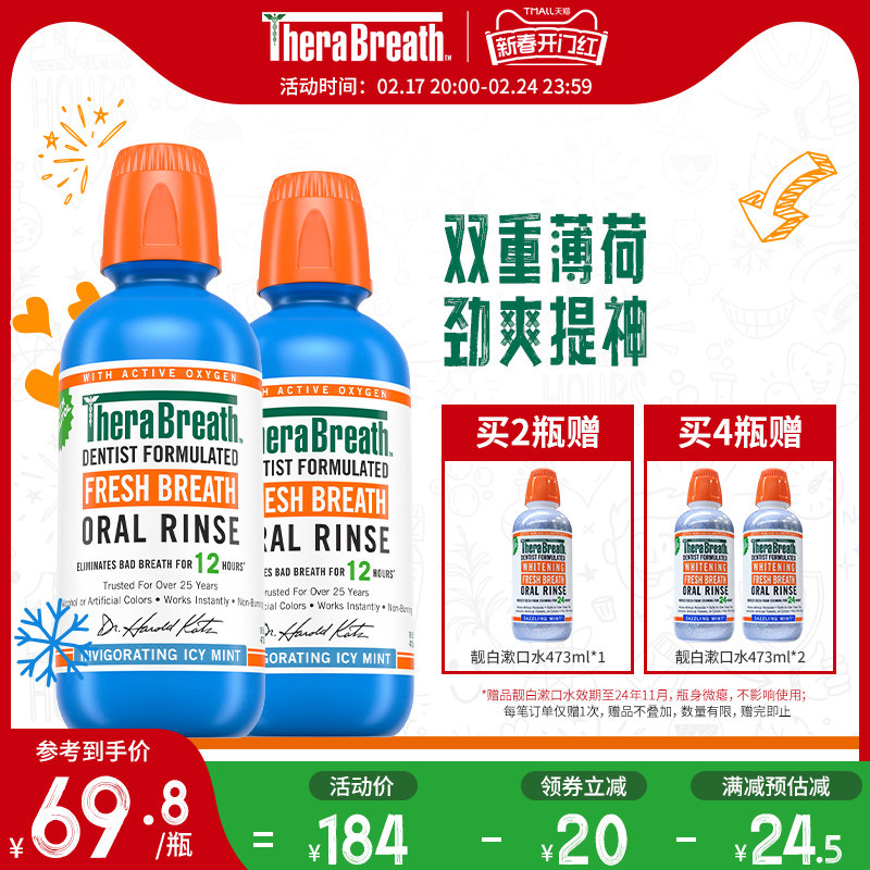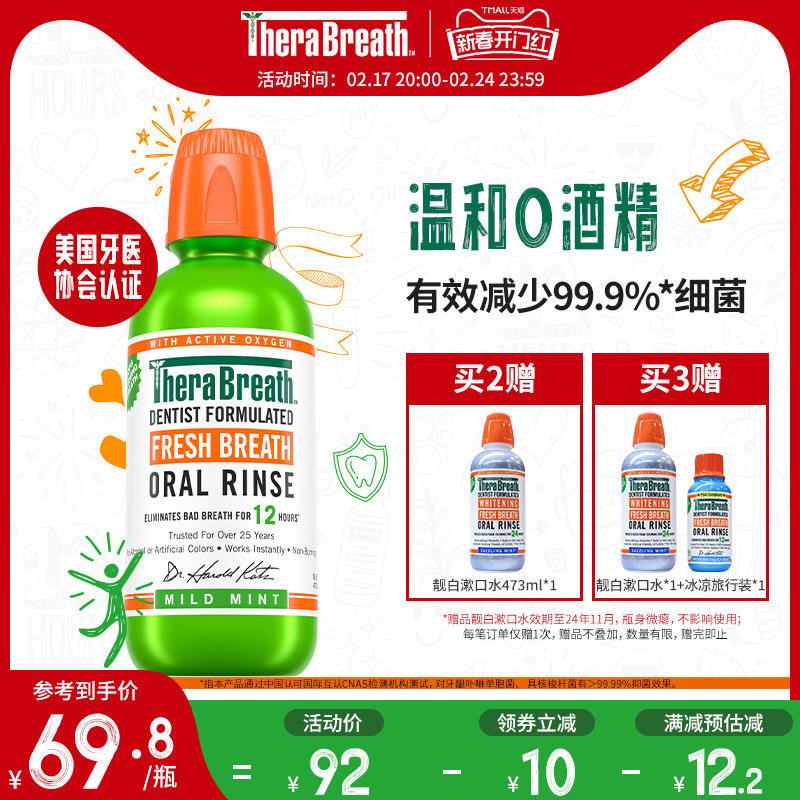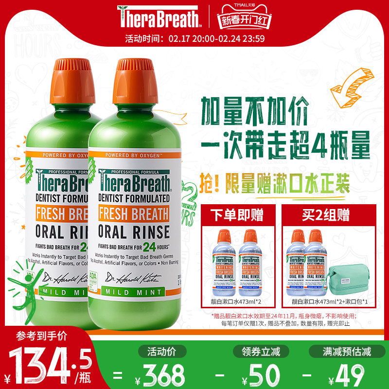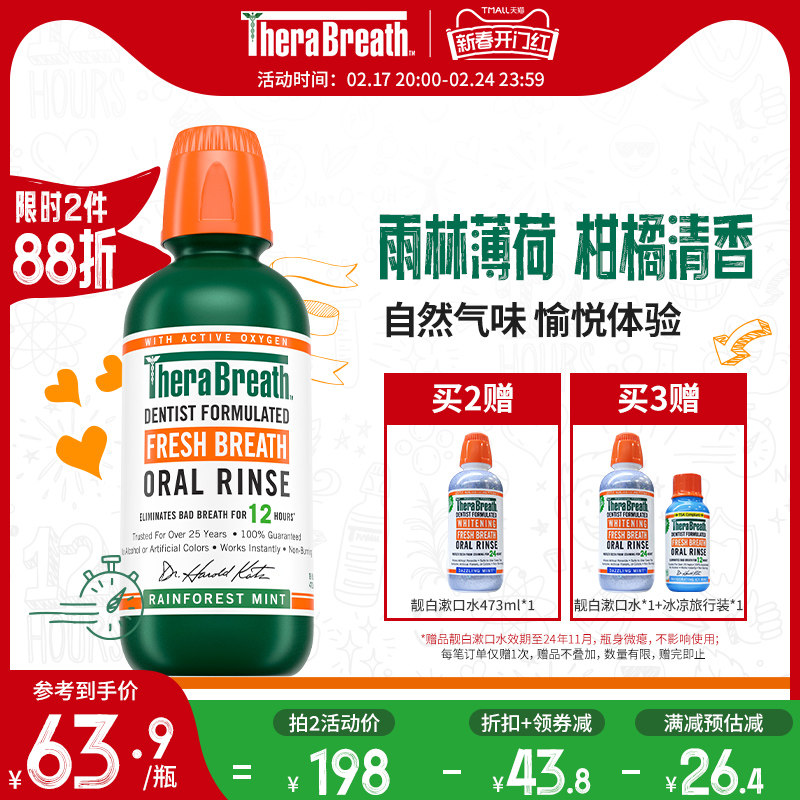 2瓶装 美国TheraBreath凯斯博士除口臭修复美白牙齿漱口水473ml