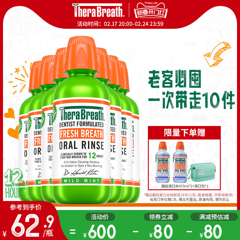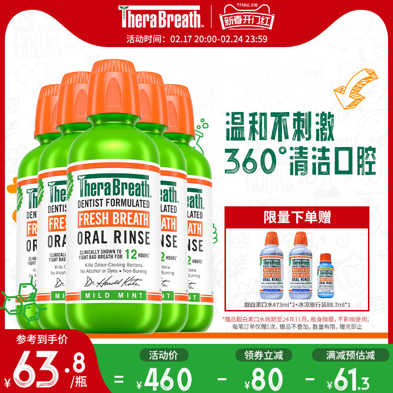 【自营】5瓶凯斯博士TheraBreath漱口水杀菌除口气防蛀温和正畸