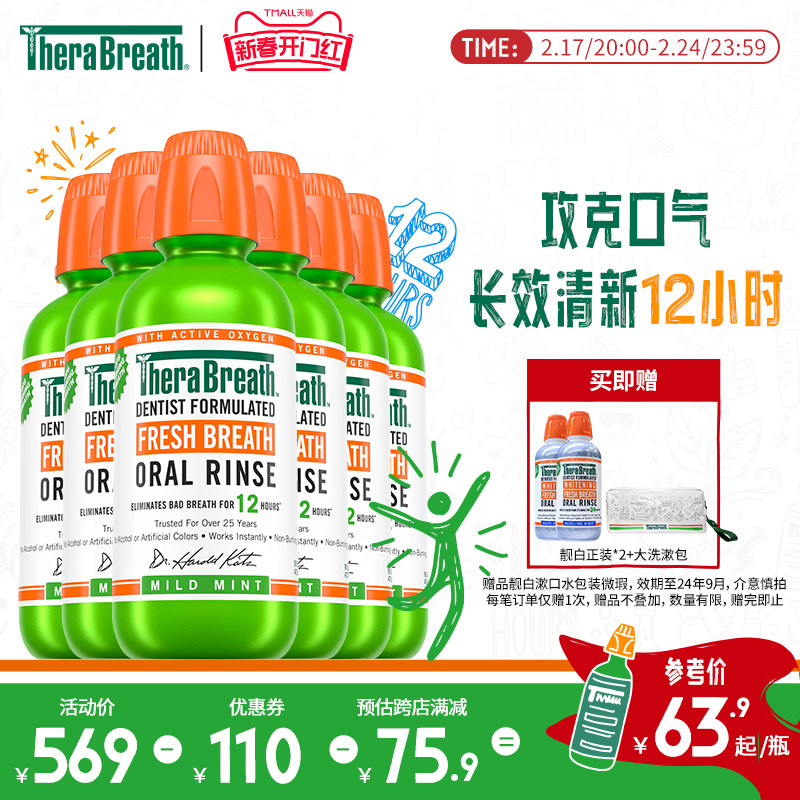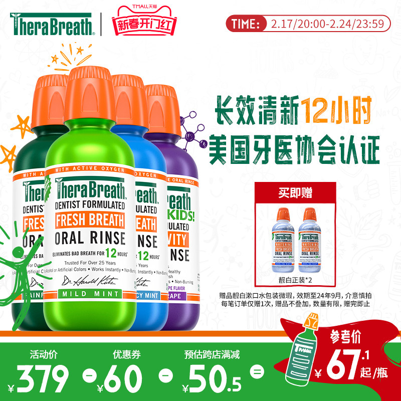 【5瓶】TheraBreath凯斯博士漱口水美国进口清新口气男女生便携簌