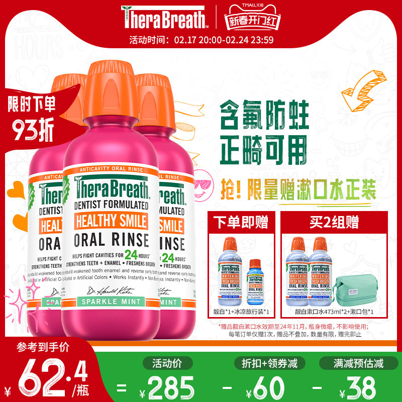 3瓶装美国TheraBreath凯斯博士美牙漱口水去口臭防蛀牙牙釉质修复