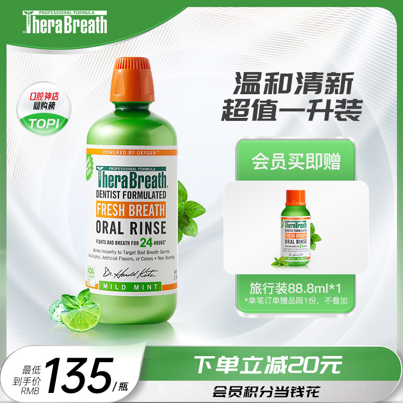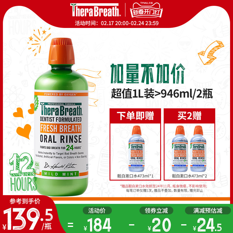 TheraBreath凯斯博士漱口水清新口气去除口臭气超大容量1L装男女
