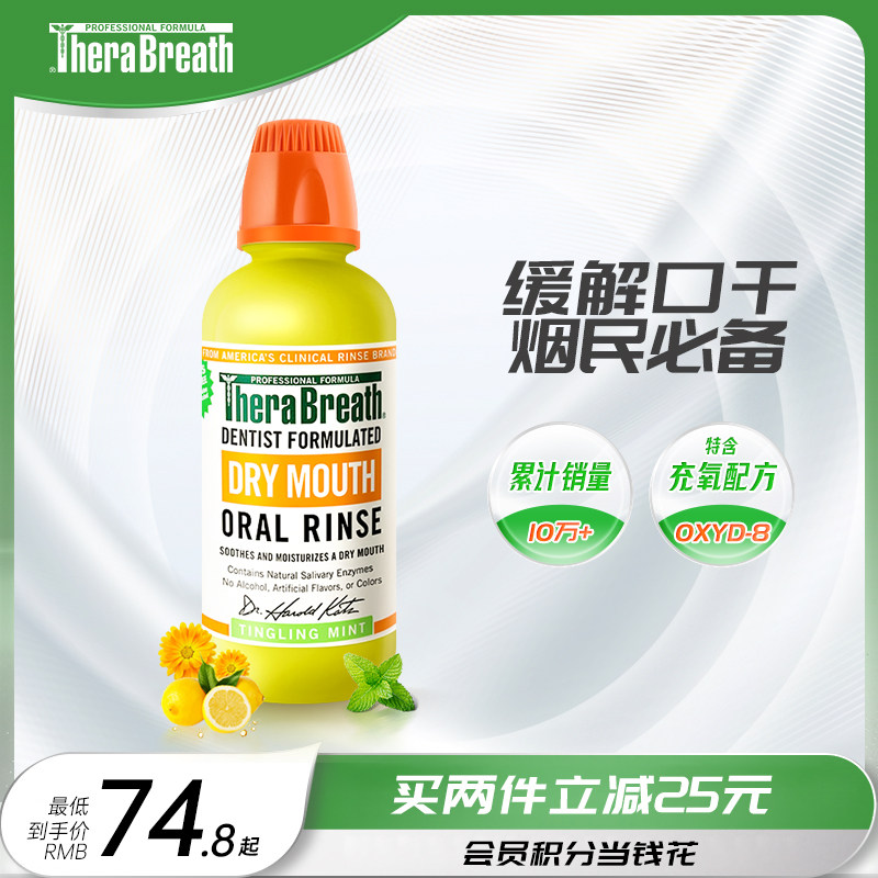 Therabreath凯斯博士缓解口干漱口水滋润口腔清新口气男女除异味