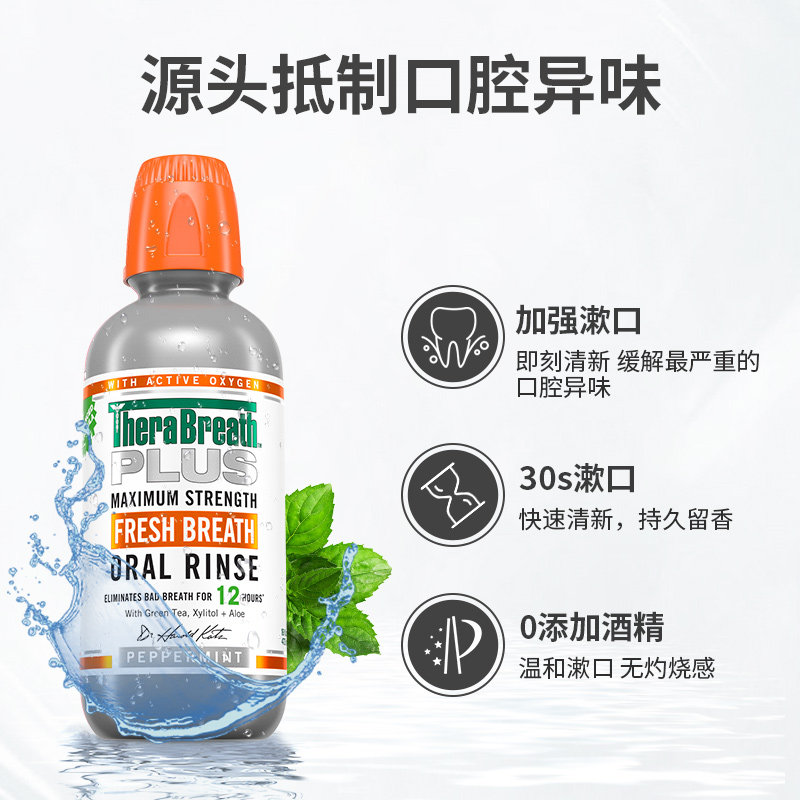 TheraBreath凯斯博士Plus加强型漱口水男生口臭清新持久留香女生
