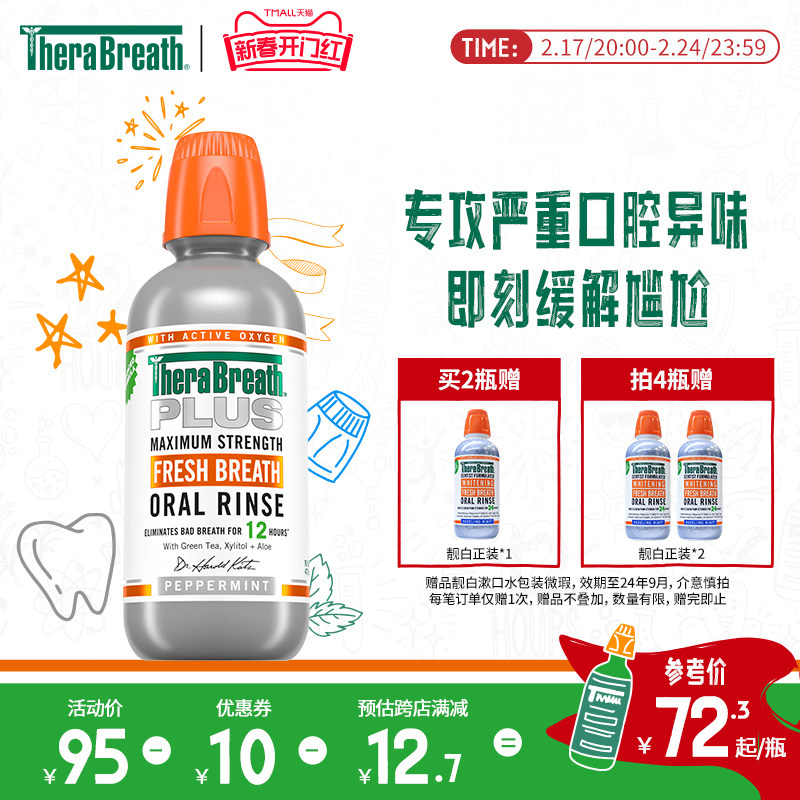 TheraBreath凯斯博士Plus漱口水升级瓶装清新持久留香至强型遬簌