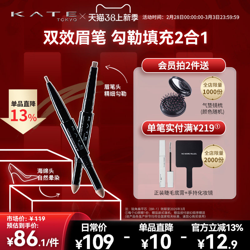 【自播专属】KATE凯朵双效立体眉笔女初学者不易脱色自然