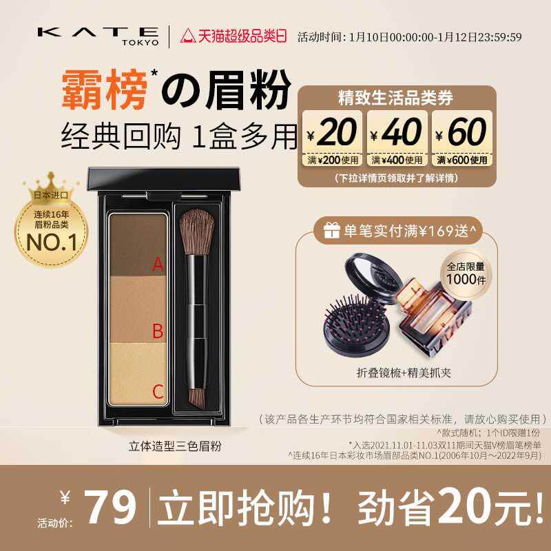 KATE/凯朵立体三色眉粉盘女鼻影修容眉笔不易脱色