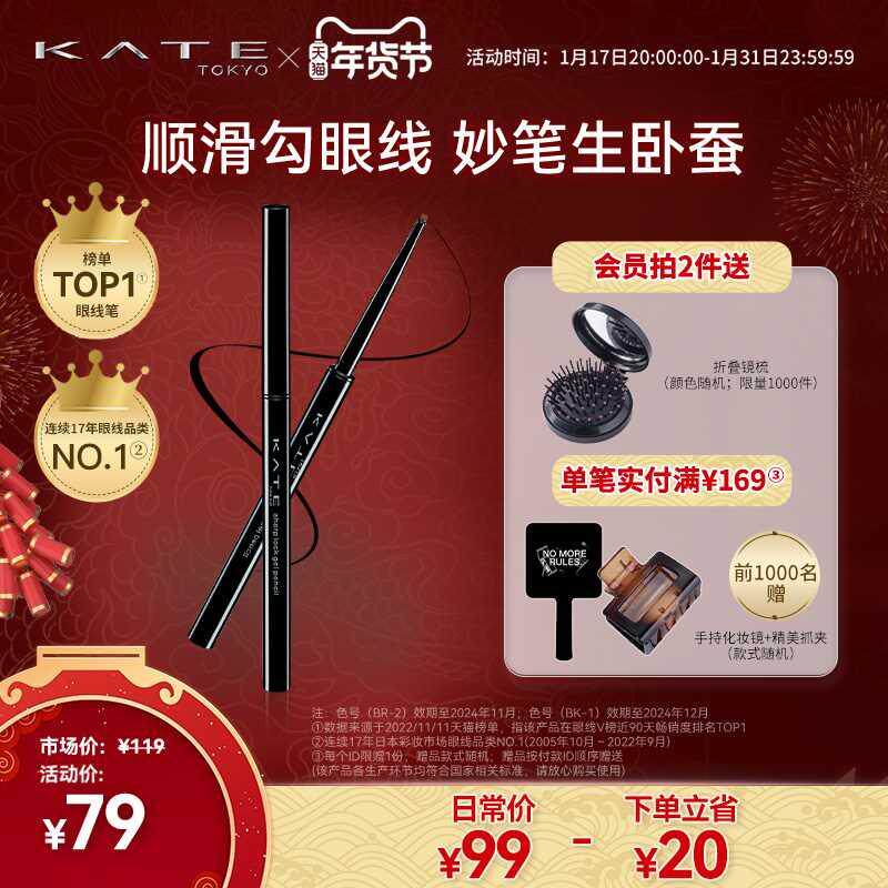 KATE/凯朵凝色柔滑眼线胶笔耐水不晕染持久眼线笔丝滑卧蚕笔极细