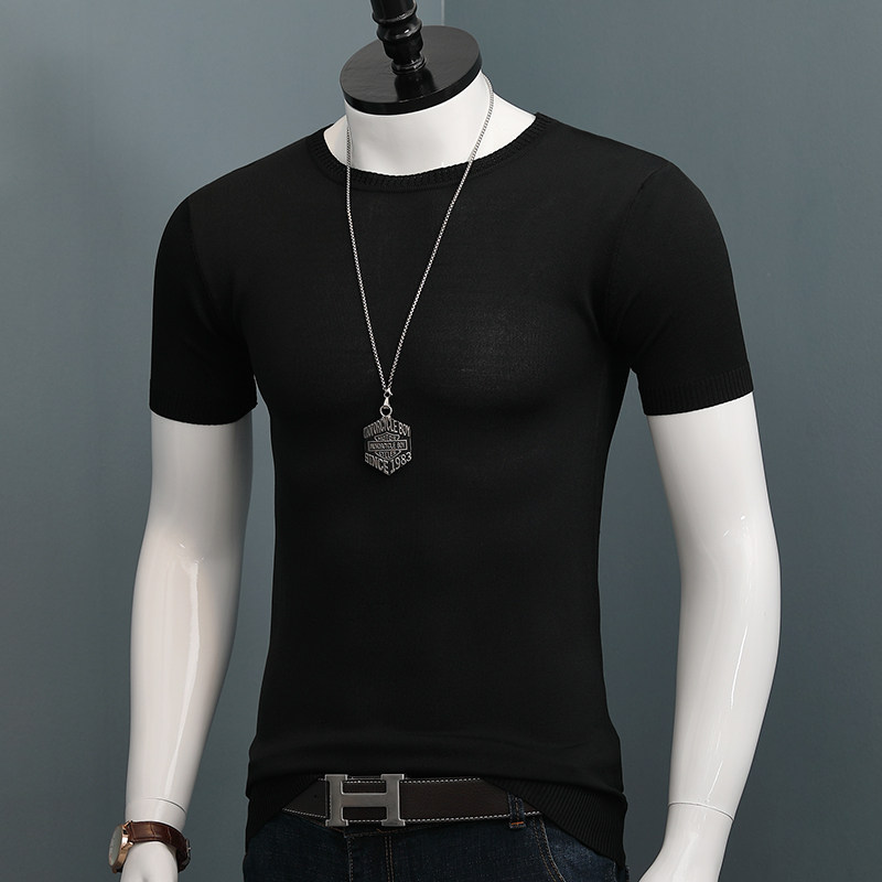 短袖男士t恤衫夏季轻薄冰丝半袖青年潮韩版半高领打底衫运动上衣