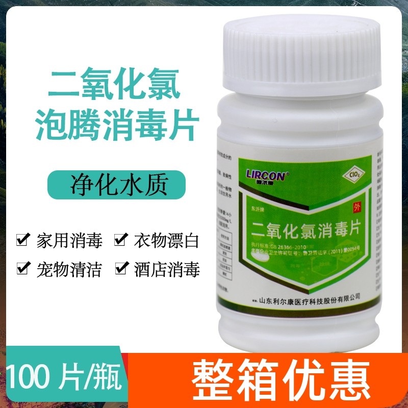 利尔康二氧化氯泡腾消毒片饮用水泳池水家庭医院物体表面净化水质