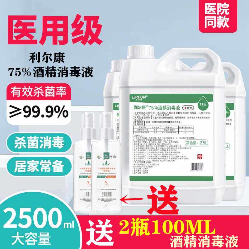 利尔康家用75度酒精消毒液75%乙醇免洗杀菌皮肤衣物消毒水2500ml