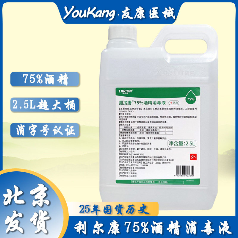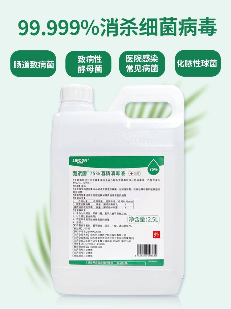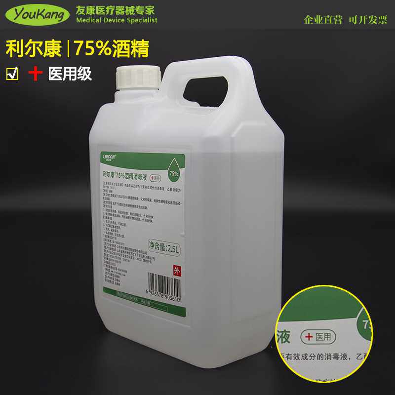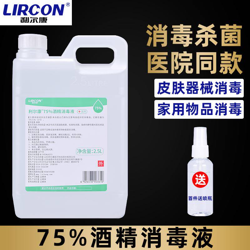 利尔康75%酒精消毒液2.5L医家用75度乙醇皮肤物品家用消毒杀菌