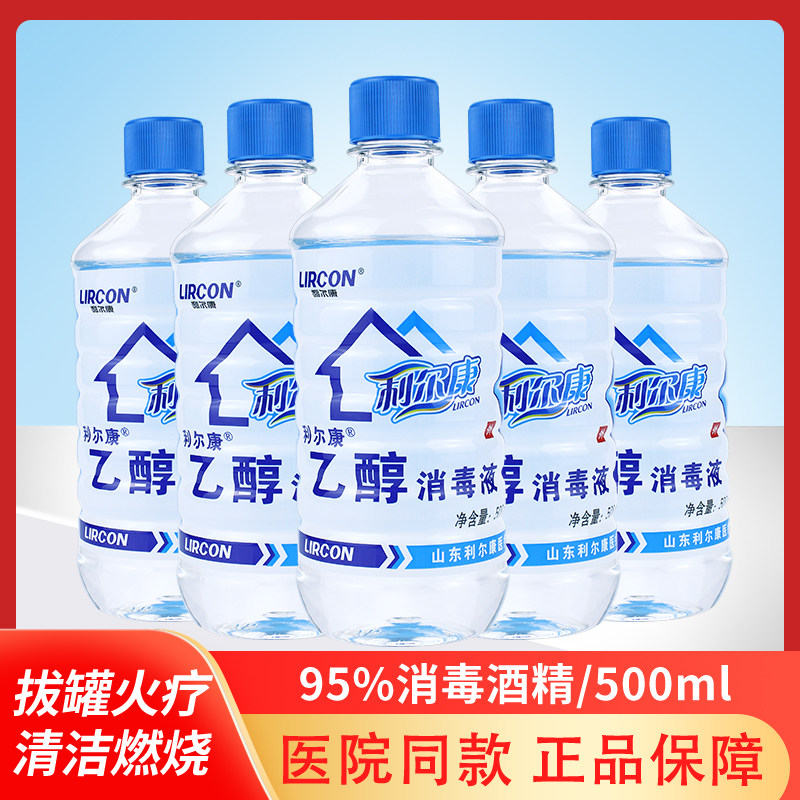 5瓶利尔康95%酒精消毒液皮肤伤口杀菌乙醇家用家居清洁500ml装