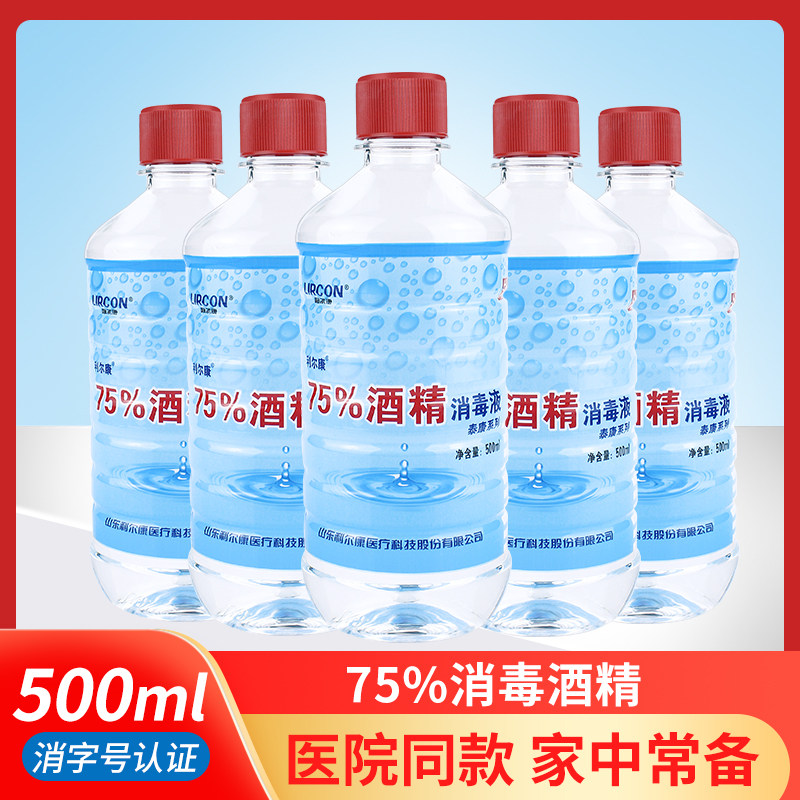 利尔康75%酒精消毒液500ml*5瓶家用皮肤伤口器械物品杀菌75度乙醇