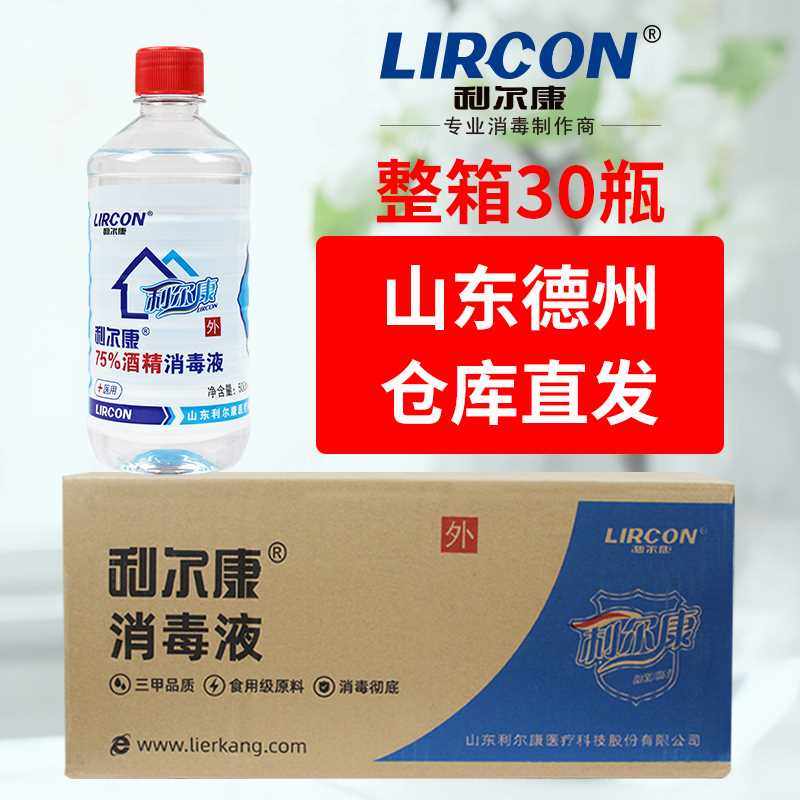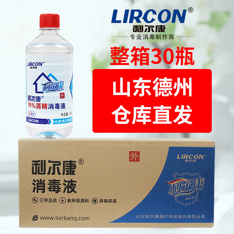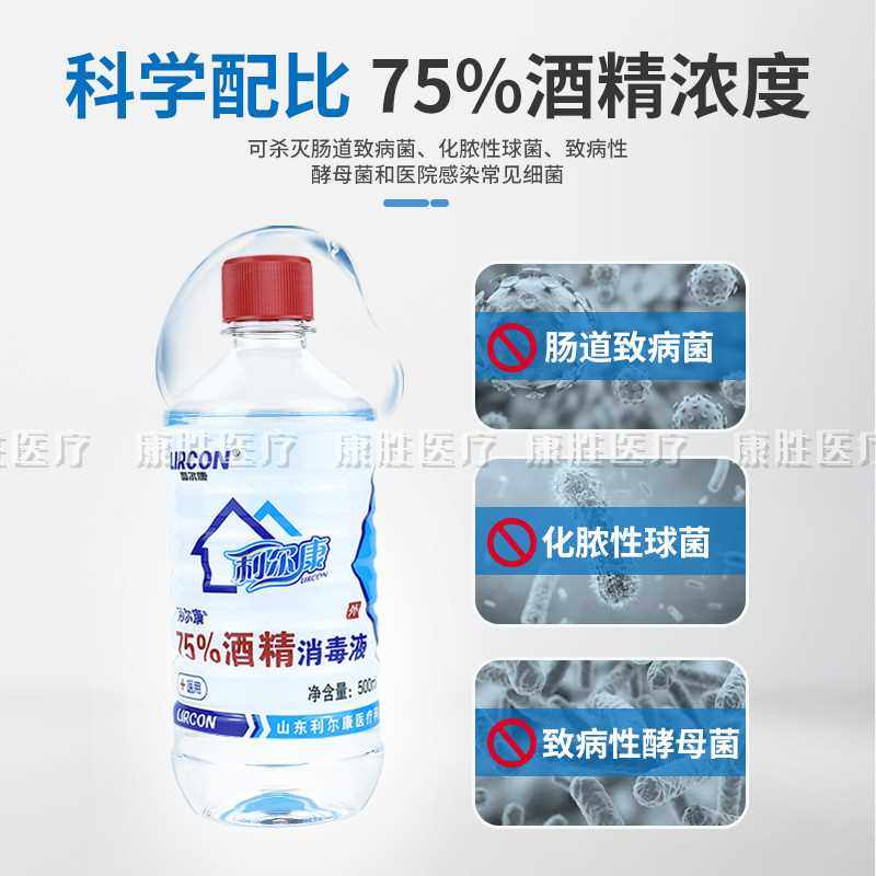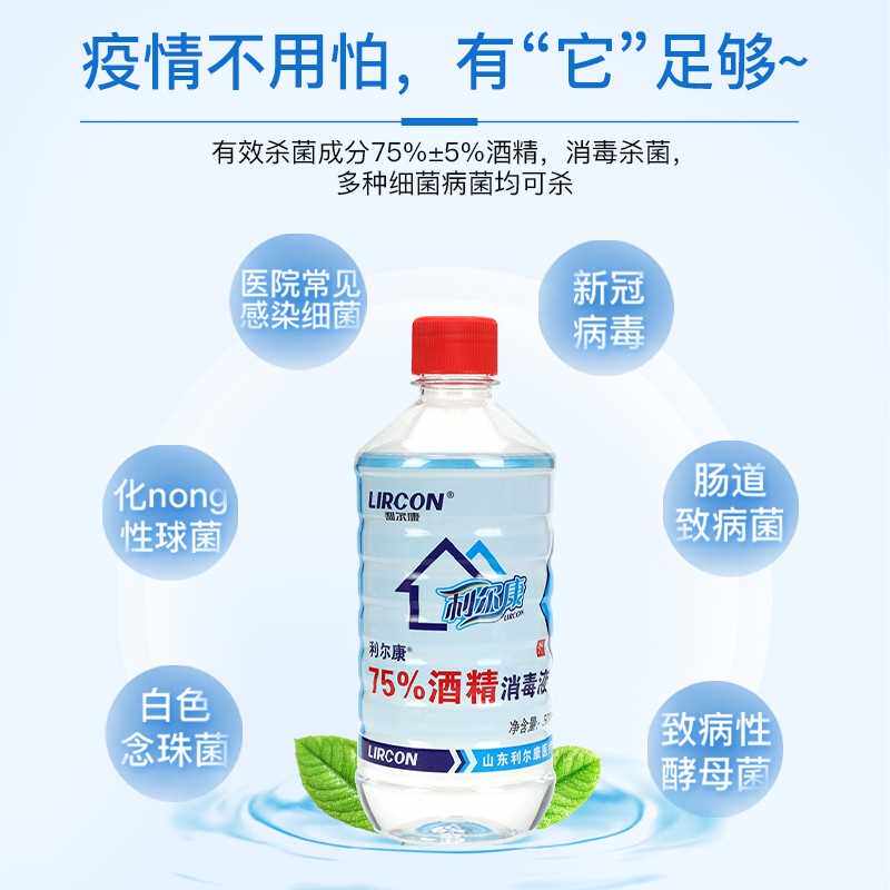 利尔康75%酒精消毒液500ml皮肤伤口杀菌75度乙醇家用物品清洁整箱